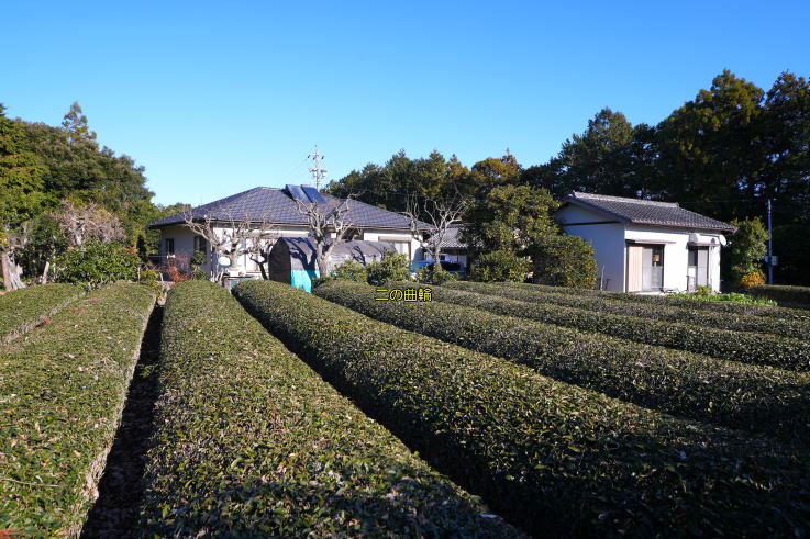 進み、本曲輪手前の左手「堀切」、ジグザグ道を登り切った民家が「二の曲輪」、南の茶畑