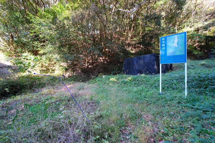 【所感】殿ノ山城登城口近くに「比木城山」の案内看板が立っています。ここからは歩いて