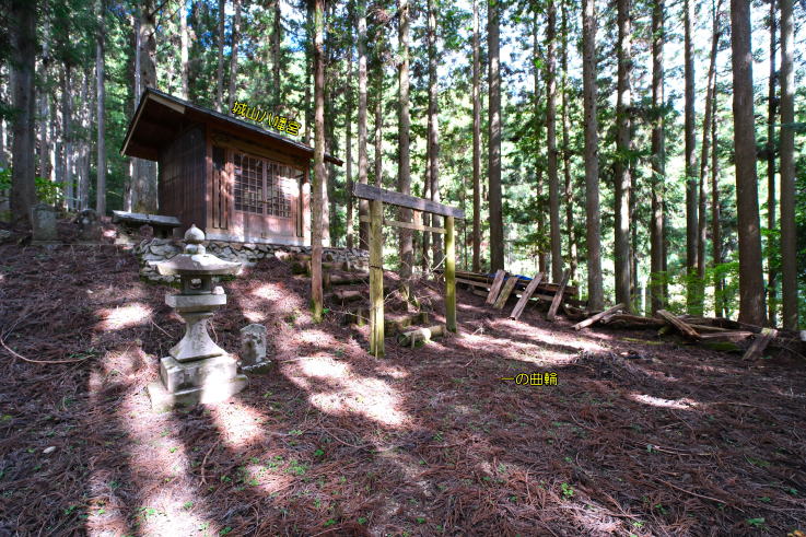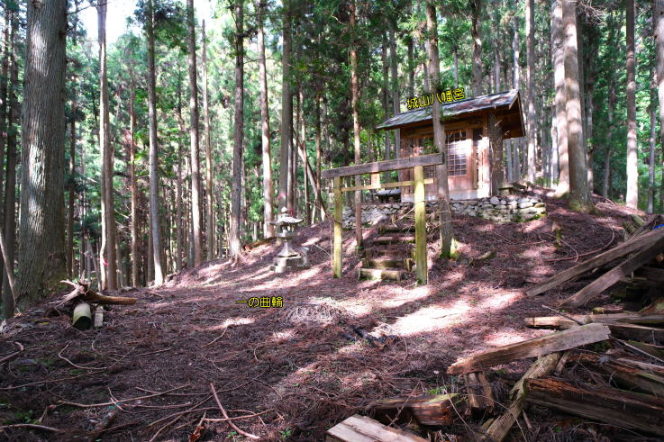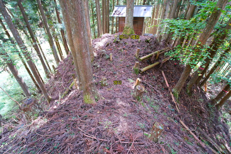 二の曲輪の北に10m程高い一の曲輪〔城山八幡宮〕、背後〔北側〕に堀切が一条あります