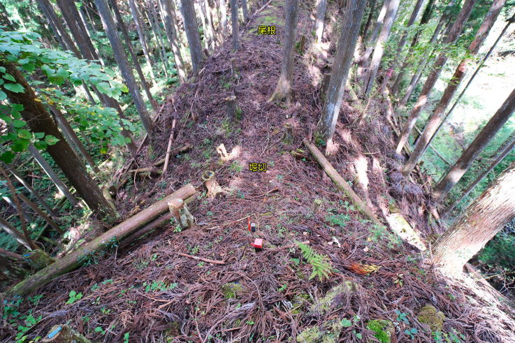 を堀切で遮断しています。三州街道〔飯田街道・伊那街道・国道153号線〕の押さえとし
