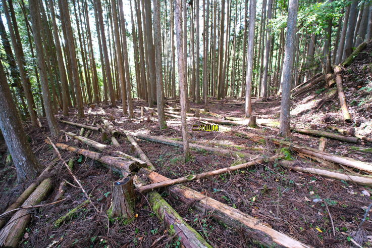 を登ると、上郷城跡で最も広い二の曲輪に着きます。二の曲輪の南に2m程低い三の曲輪、
