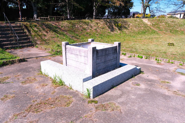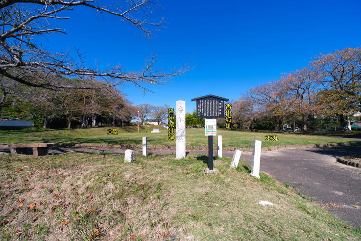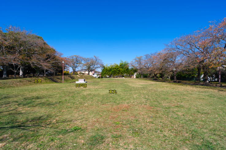 す。本丸・二の丸・諏訪曲輪・侍屋敷跡〔駐車場〕・本丸を囲む空堀・本丸↔二の丸間の土