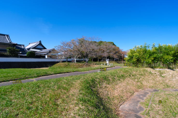 橋が整備され、遺構が分かり易くなっています。往時の城域は時代によって異なりますが、