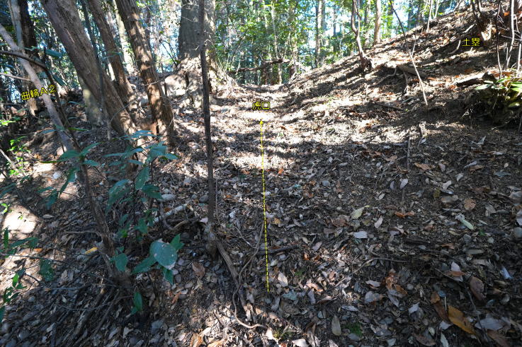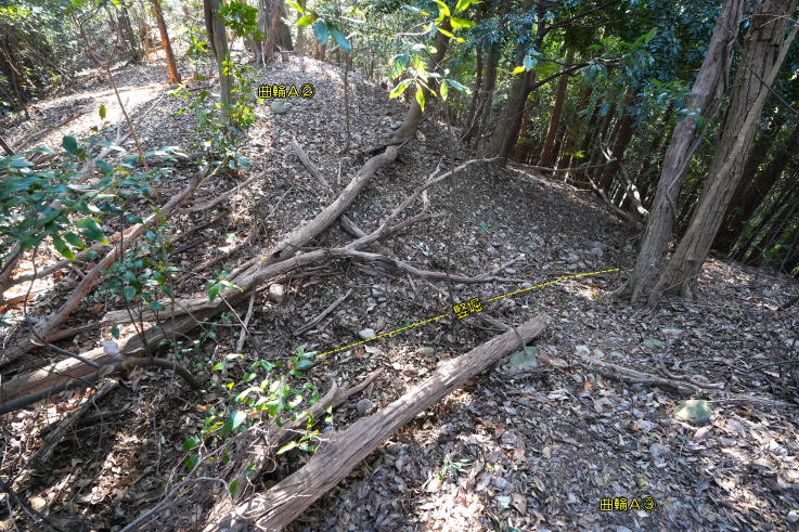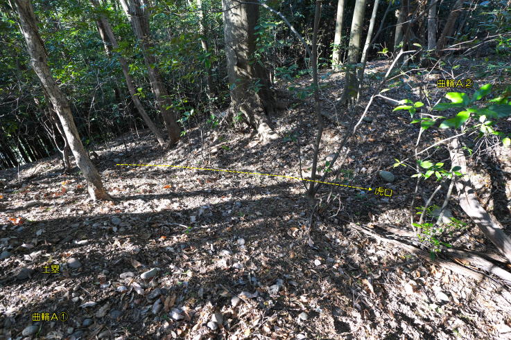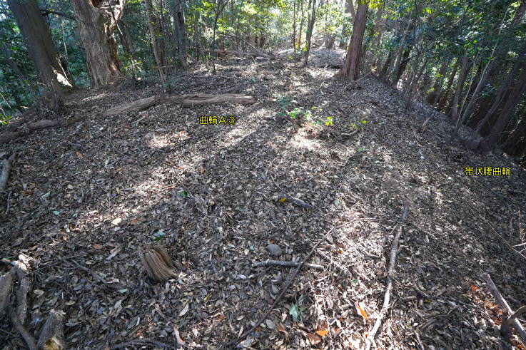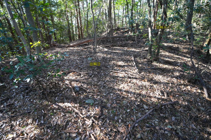 曲輪Cが並んでいます。曲輪Aは竪堀と虎口で曲輪を三分割しているように見えるので、先