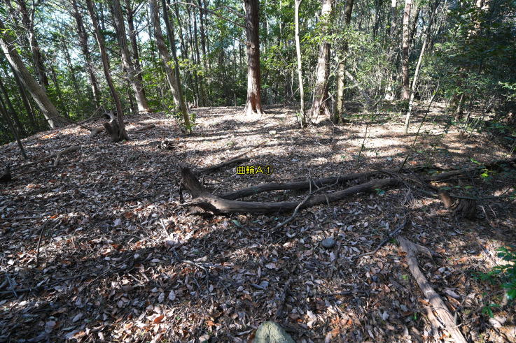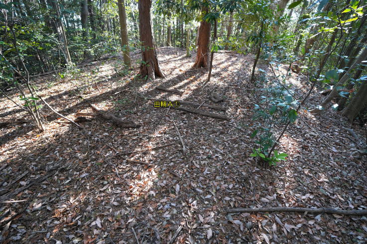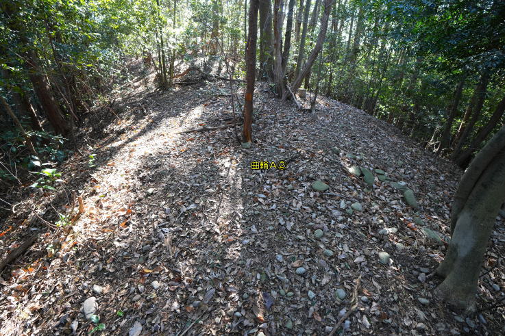 端部から順に曲輪A@・曲輪AA・曲輪ABと表現させて貰いました。砂利や丸石が多くて