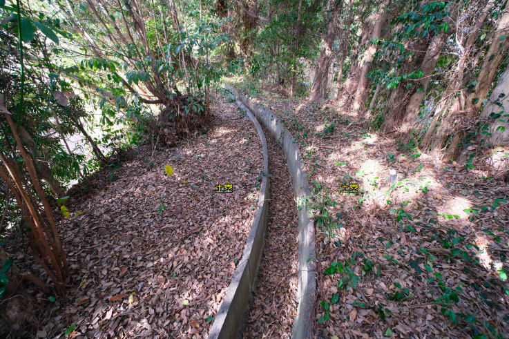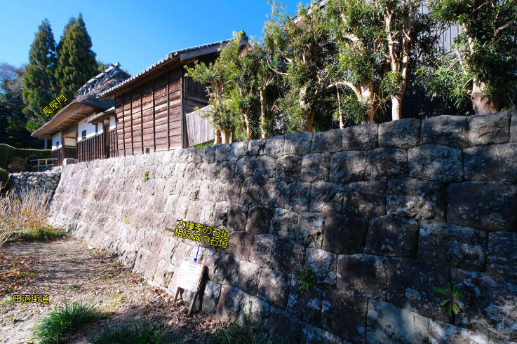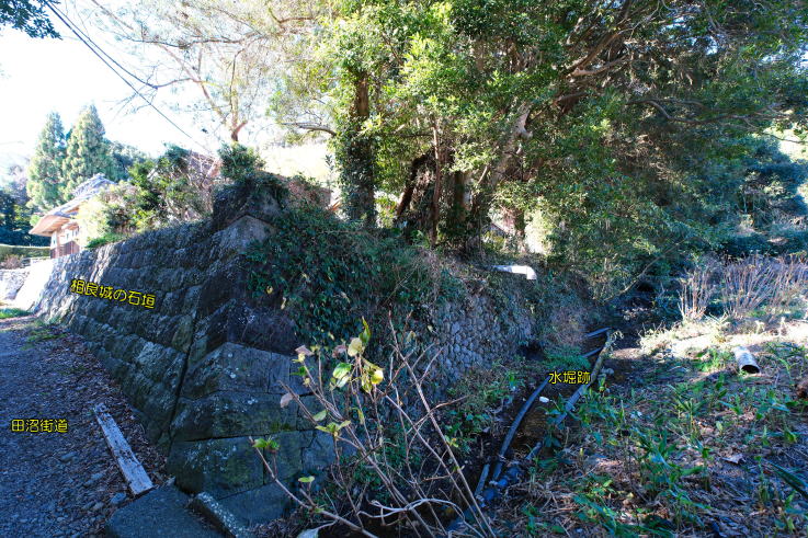 際に購入した石垣、東側に水堀跡も残っています。屋敷の前を田沼街道が通っていたという