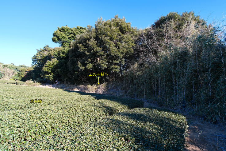 【所感】私は大江配水池の建物から800m北進した右手の脇道から茶畑〔本曲輪〕に入り