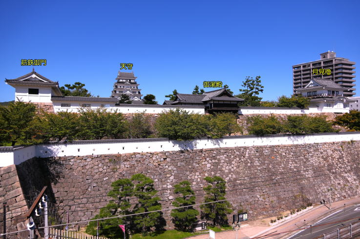 、1966年天守・月見櫓・御湯殿を復興、1973年鏡櫓が外観復元される。2006年