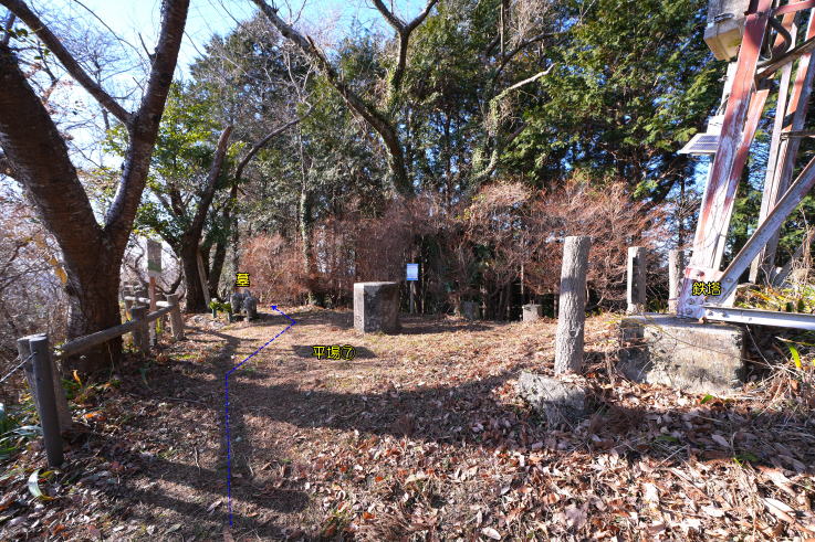 した。現在は神社、山林などに変わり、曲輪、堀切、土塁が残る。