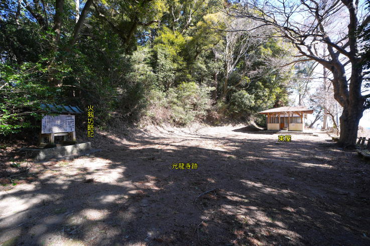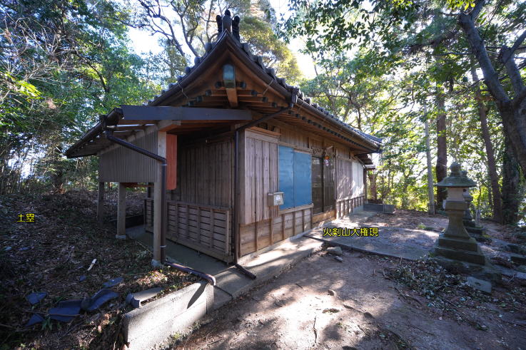 た。火剣山大権現堂の裏手に土塁の一部が残り、その背後に続く東尾根に片堀切A、その先