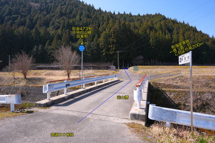 れた「信玄坑」とは川で繋がっています。県道80号線沿いの標柱「信玄抗」は向山橋〔古