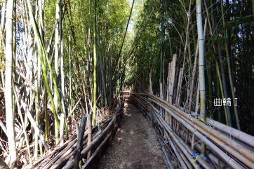 鉄三河線線路・竹薮が曲輪T、竹藪の小路を進んだ左手の下り坂〔鉄橋への道〕が曲輪T−