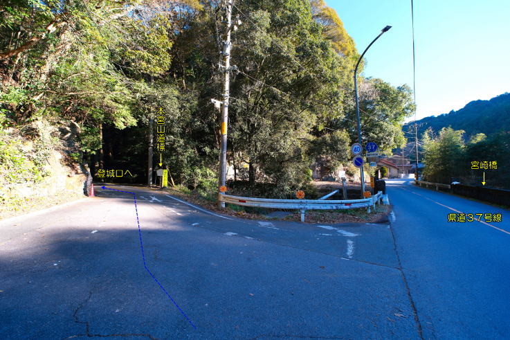 囲まれた城跡です。登城口は県道37号線宮崎橋の袂から奥明見川沿いに50m程進んだ左
