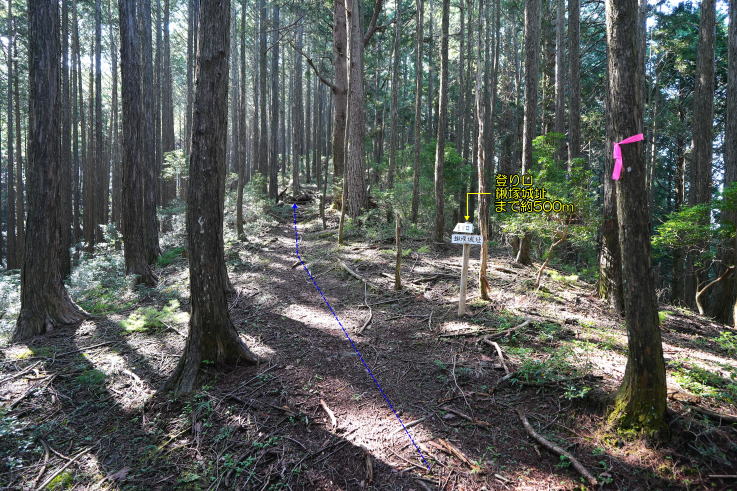 址登り口」の標柱が見えるはずです。車は50m程手前に駐車スペースがあります。先ず登