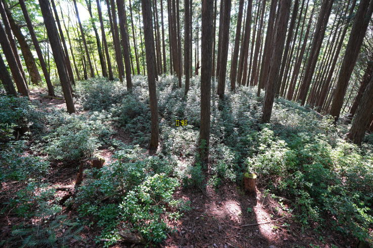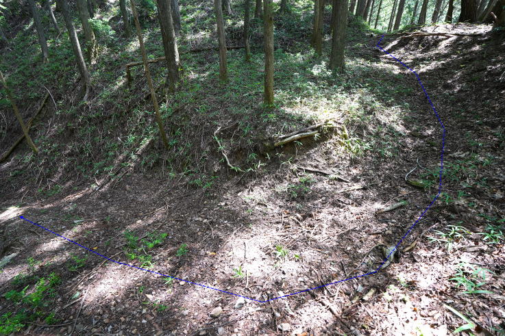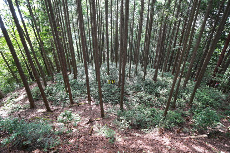 【所感】鍬塚城跡は大野山〔標高805m〕の南方1km、法華城跡の東方920mに位置