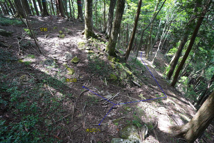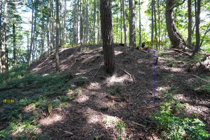 。縄張りはT郭を中心に南にU郭・V郭、北にW郭・X郭、西に[郭・Y郭・Z郭と三方に