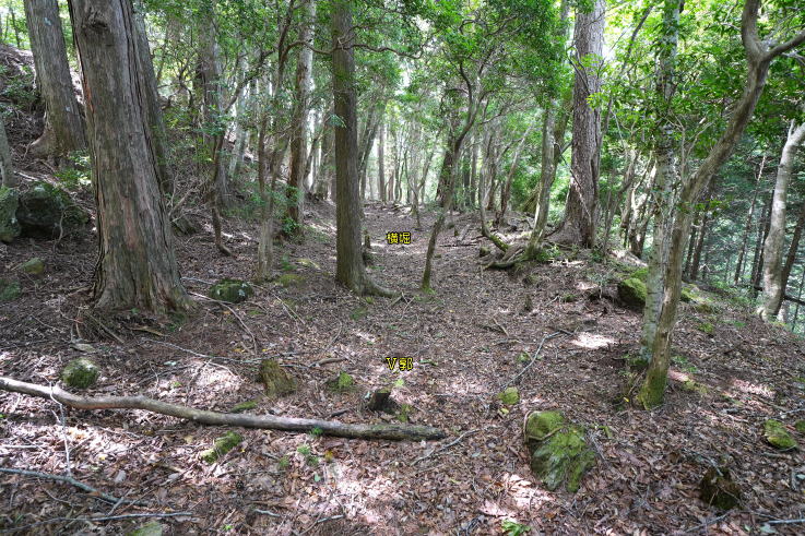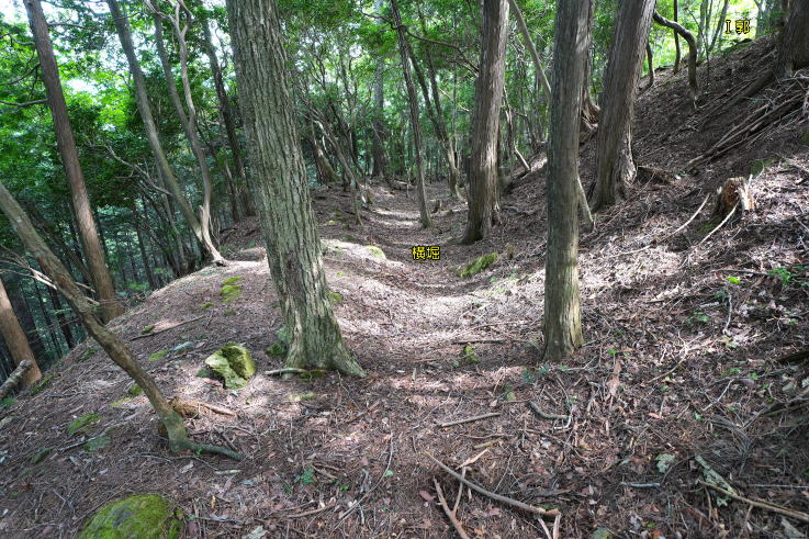 なり、曲輪、土塁、堀切、横堀、石積みが残る。