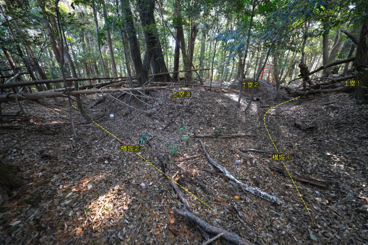 調した曲輪・土塁・横堀で造られており、近くの城山城も同じような特徴を持っていること