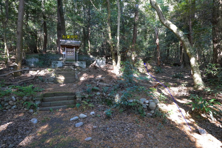 ると、左手に駐車場があります。宮山城跡の登城口は敏太神社左手の階段で、秋葉神社→豊