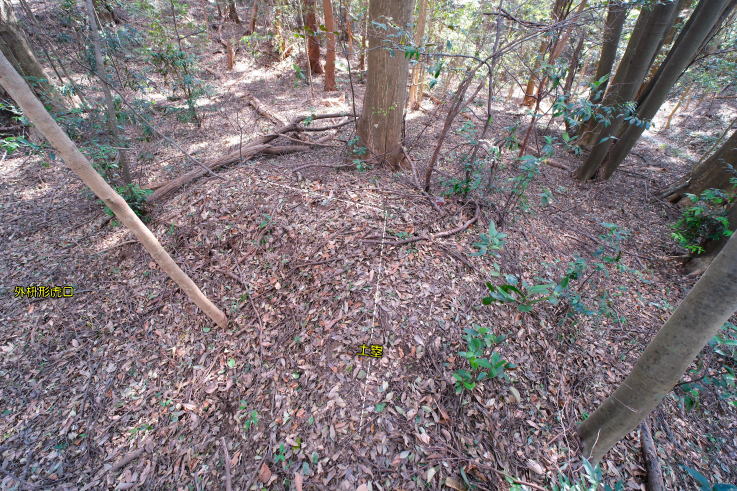 ハイキングコースの西側にも土塁が残っています。低い土塁で、撮っても分かり辛いところ