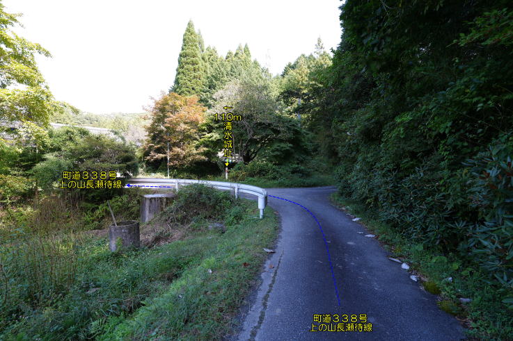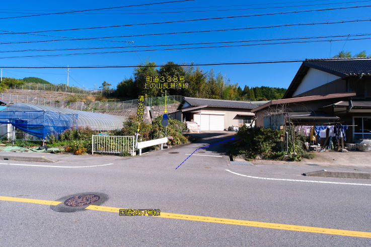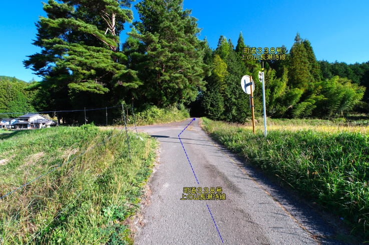 号から450m程西進した右手の「町道338号上の山長瀬待線」から行くと良いでしょう