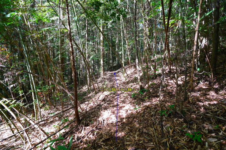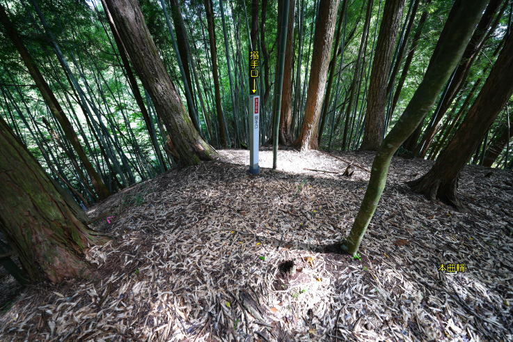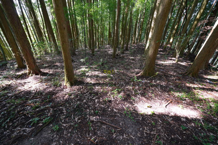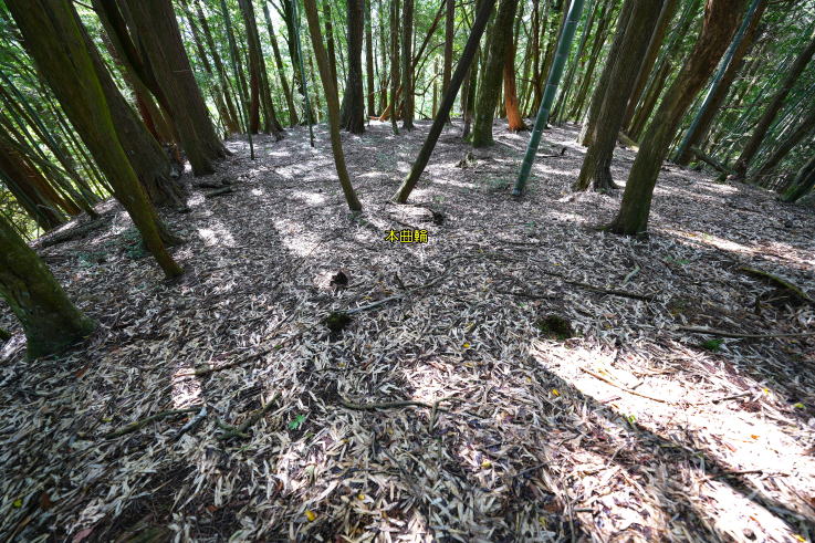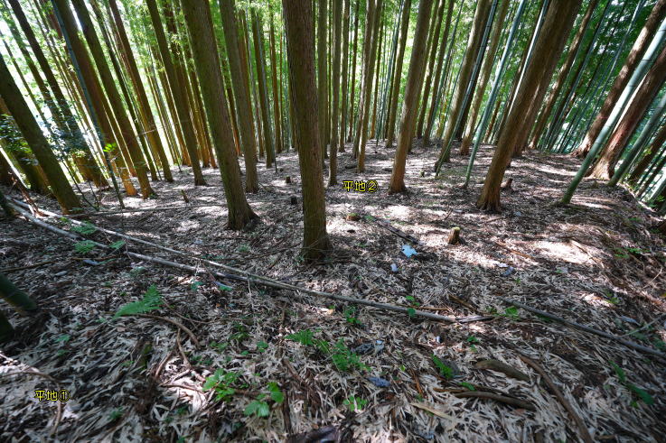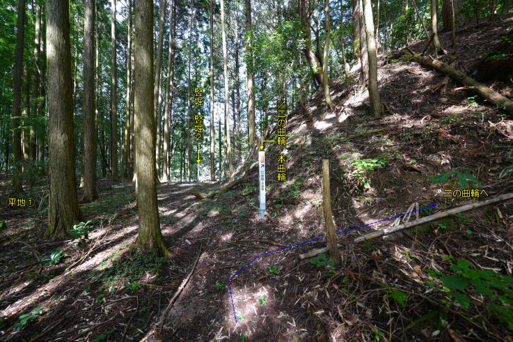 して、左手の小道からスタートします。二の曲輪入口の左手に広がる平地①と平地②は畑地