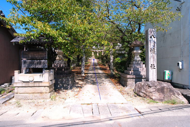 【所感】スギ薬局堤本町店から県道284号線を350m程西進した左手に八幡社の鳥居が